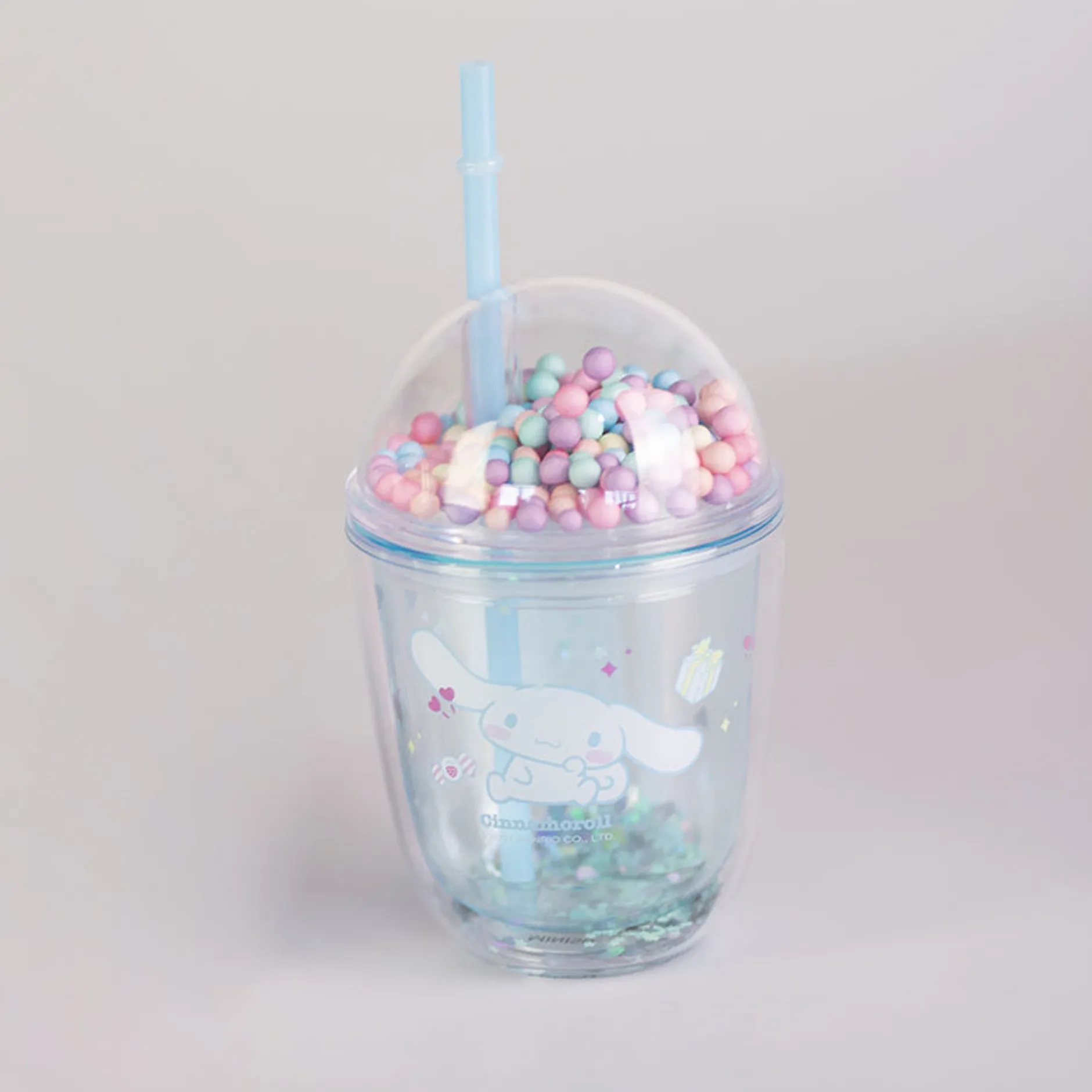 Borraccia Azzurra In Plastica Dura Con Cannuccia Di Cinnamoroll Della Collezione Sanrio.