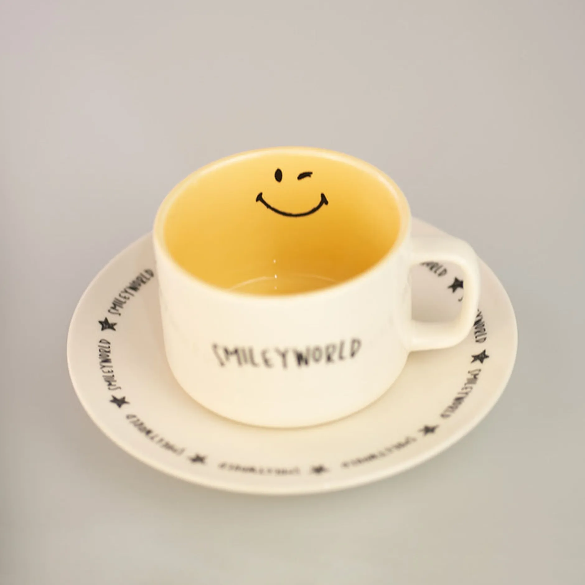Tazza In Ceramica Bianca Con Interno Giallo Della Collezione Smiley World.