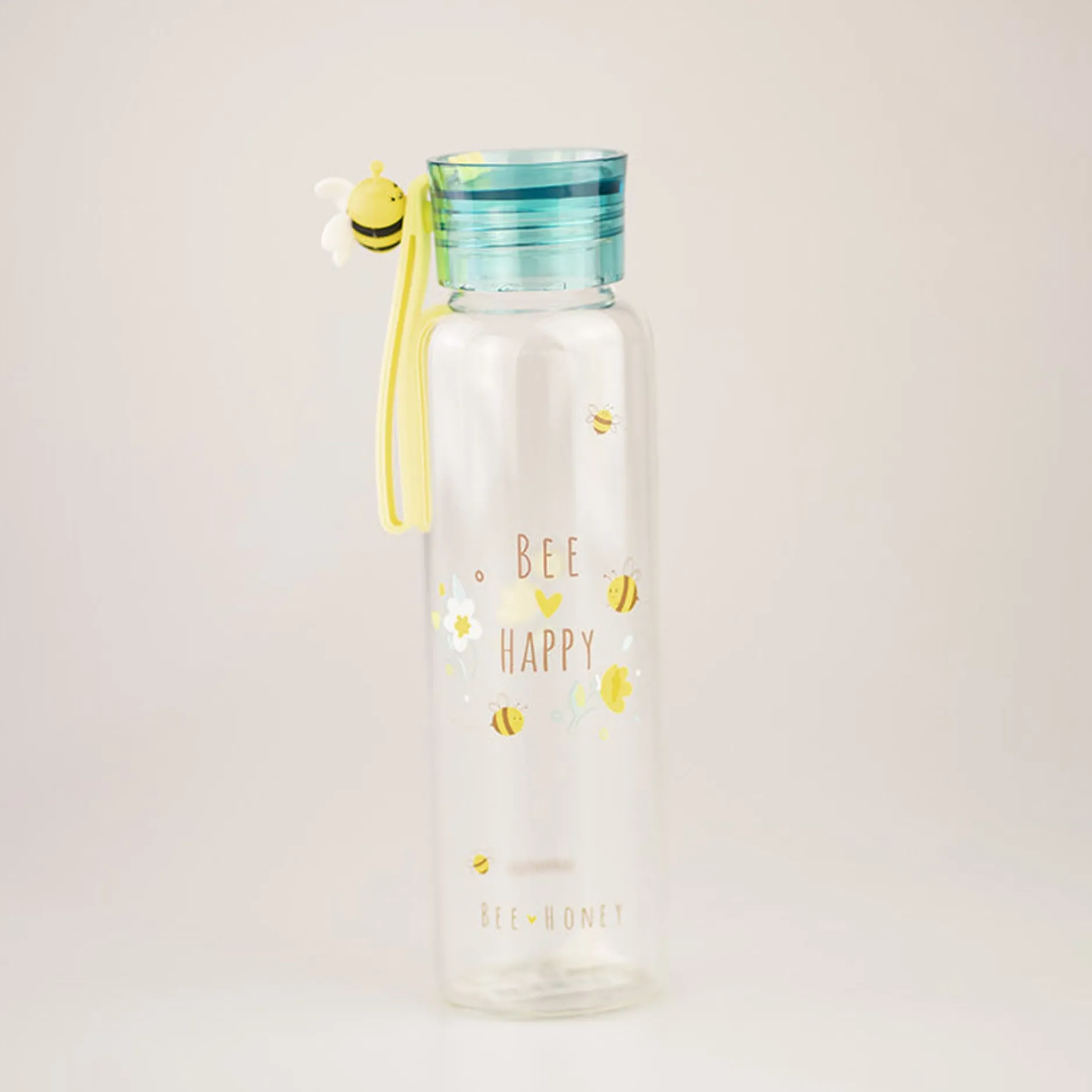 La Borraccia Ha Il Tappo Azzurro Ed Un Cordino Giallo Con Un’Ape Grande, Che Permette Di Trasportarla Soltanto Tenendo Il Laccetto.